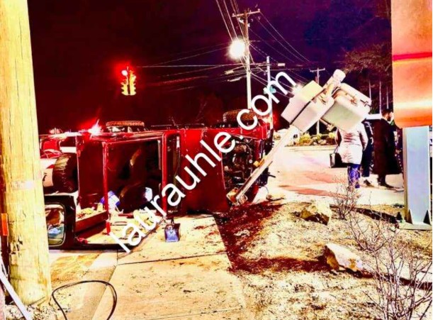 Stewart Avenue is closed in Westbury due to multiple vehicle accident with injuries. One vehicle, a Jeep flipped to the sidewalk.