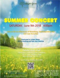 June 9 from 4pm to 6pm at The Center at Maple Grove Cemetery, 83-15 Kew Gardens Rd. Free by reserving in advance by calling (347) 878-6614 or $5 at the door. Light refreshments after the concert. Free parking.
