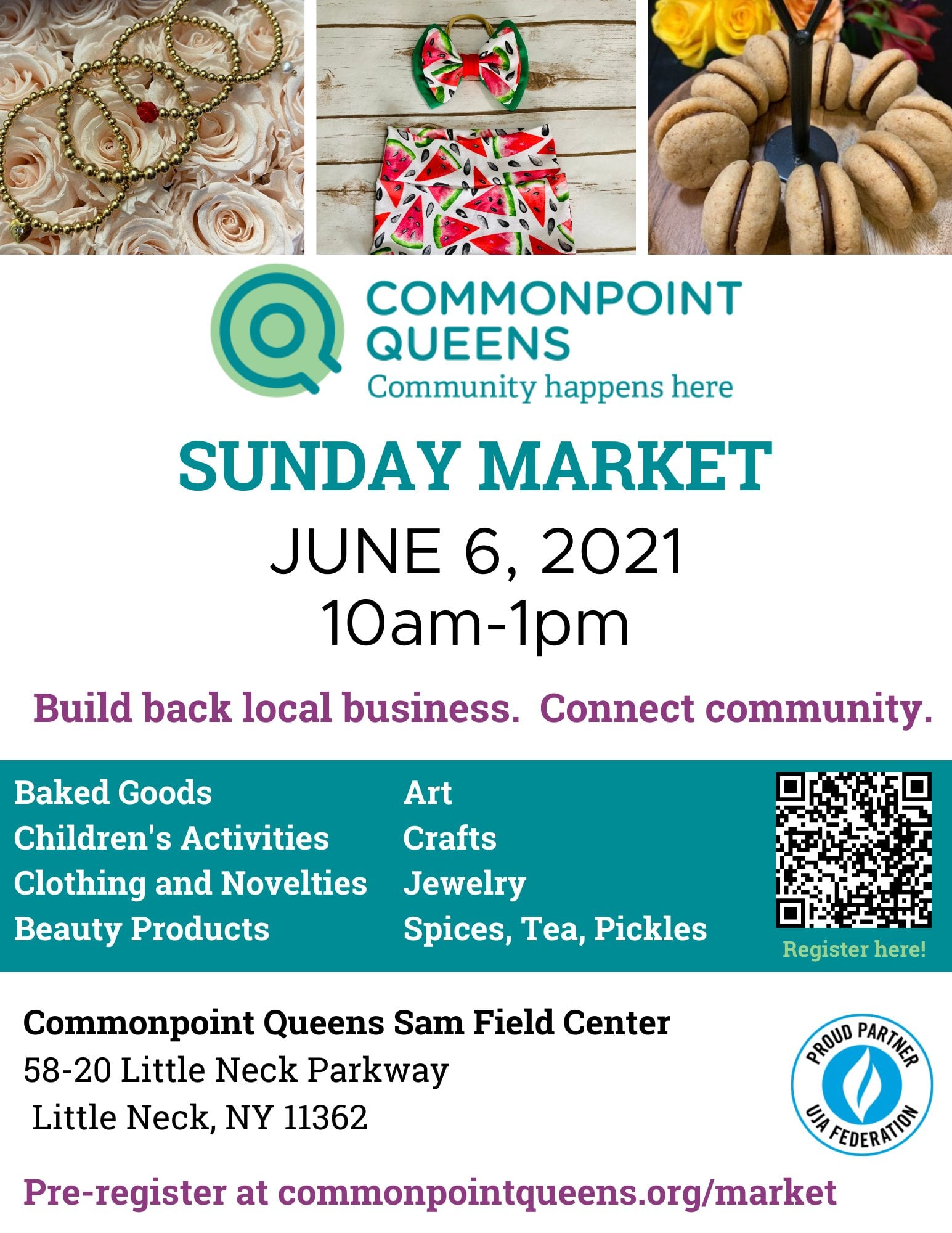 Sunday Market at the Samuel Field in Little Neck on June 6 from 10am to 1pm. Located at 58-20 Little Neck Parkway. Pre-registraion required. Here is the link, https://www.commonpointqueens.org/event/commonpoint-queens-sunday-market/