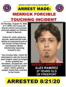 Suspect charged and held on bail for forcible touching in Merrick