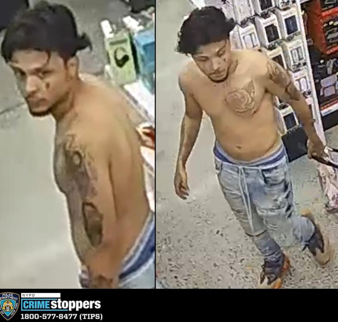 WANTED for a Robbery inside of a Five Below store located at 262 Atlantic Ave #Brooklyn @NYPD84pct  on 8/11/23@ 5:17 P.M. The individual displayed a knife and swung it at the employee, cutting his pants. The individual then fled the store with the stolen merchandise. Reward up to $3500 Know who he is? Call 1-800-577-TIPS Calls are CONFIDENTIAL!