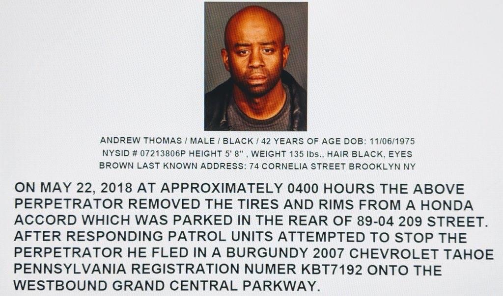 Suspect wanted for theft in Queens Village wanted for grand larceny. It happened on May 22 around 4am. The perp removed wheels from a Honda accord. Ongoing investigation.