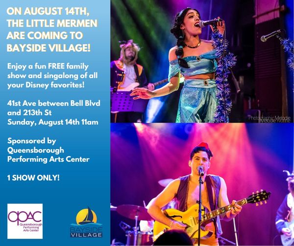 August 14 from 11am to 2pm on 41st Avenue between Bell Blvd and 213th Street in Bayside. Hear all of your Disney favorities and singalong. The show begins at 11am and includes a meet and greet beginning at 12:30pm.