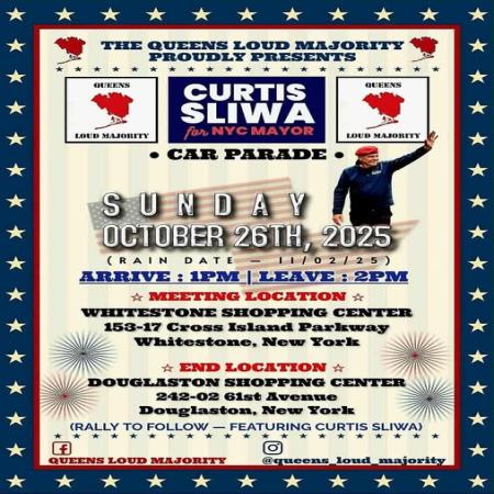 Also, today at 1pm, there will be a car parade from Whitestone to Douglaston organized by the Queens Loud Majority. The meet is at the Whitestone Shopping Center at 1pm. From there, the rally will continue to Douglaston Shopping Center.