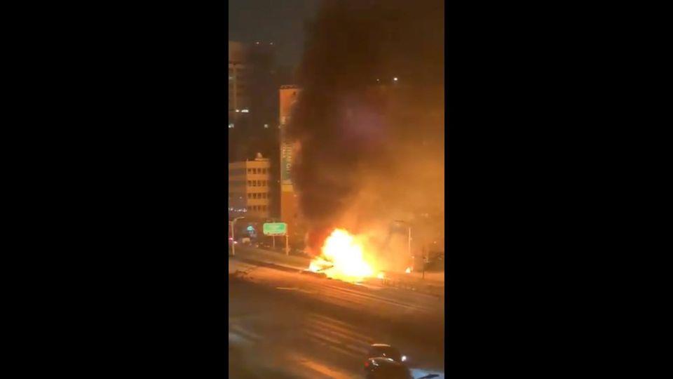 Update -This is from the FDNY, Early this morning, a tractor trailer struck a jersey barrier, located approximately at 97-05 Horace Harding Expressway in Queens, thus causing the vehicle carrying hundreds of propane tanks to overturn and eventually igniting 300 20-pound propane cylinders.