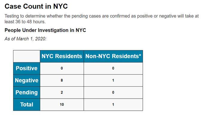 There are two people under testing for COVID19 in NYC after returning from Iran. The tests are conducted by both NY and NYC Health Dept. This means the results will be faster than CDC by fed.