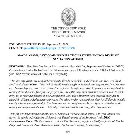 Update on the Douglaston fatality by the sanitation center