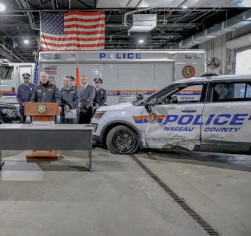 According to the NCPD, A sixth squad detective observed a 2020 blue Mercedes Benz in Roslyn that was previously reported stolen and attempted to conduct a vehicle and traffic law stop; in which the driver, a 16-year-old male juvenile, refused to comply. Multiple police vehicles were struck by the defendant before he was finally stopped on the Long Island Expressway westbound by Exit 33, Lakeville Road and placed under arrest. A 17-year-old male juvenile in the front passenger seat and a 16-year-old male juvenile in the rear passenger seat were also placed under arrest.