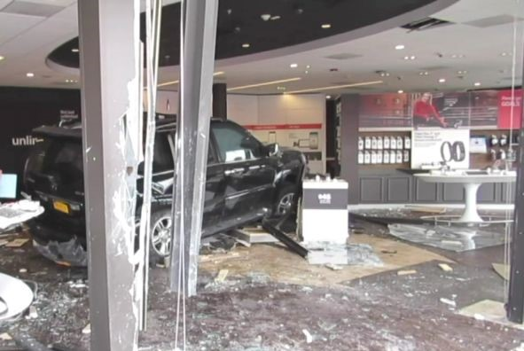Jericho - 336 N Broadway, driver lost control by stepping on the gas accidentally and rammed into a Verizon store. Driver and passenger taken to hospital.