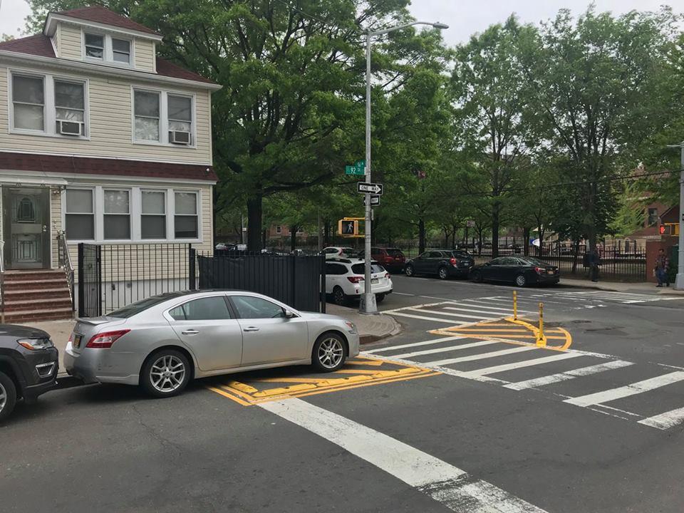 NYC Dept of Transportation is working to add more setups around school zones. The yellow marks at the corner is underway starting with Manhattan. At the same time, poles with yellow marks will be added in the corner for safe crossing. Concerned residents can also call 311 to have the setup on their corners but there is a waiting list.
