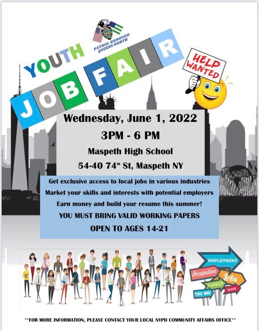 Wednesday, June 1 from 3pm to 6pm at Maspeth High School located at 54-40 74 Street.